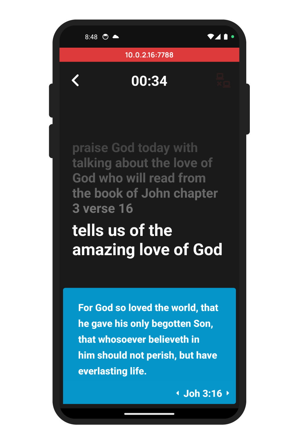 Project verses to any screen using only local network connection. No internet required for flawless presentation.